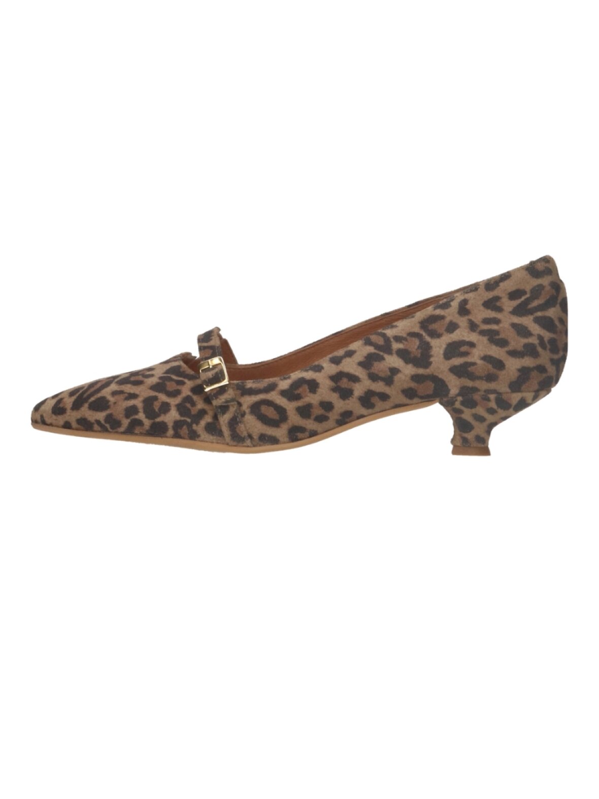 Flot leo ballerina fra Pavement med lille hæl. Arian Suede skoen har en spids snude og en smal rem med fint gyldent spænde foran. De er i skønt fleksibelt ruskind og er super behagelige på.