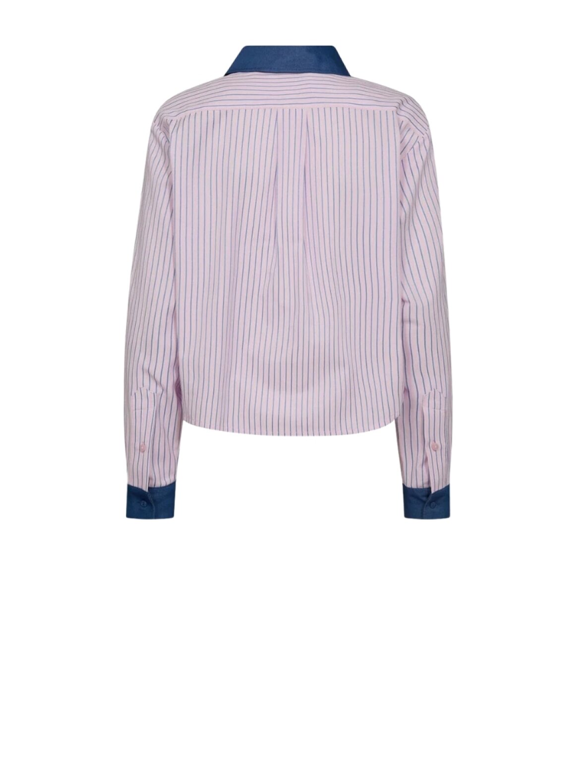 ❤︎ Skøn stribet skjorte fra Co'Couture med denim krave og manchetter. KarinaCC Stripe Mix skjorten har lange ærmer, et let cropped box fit og knaplukning foran.