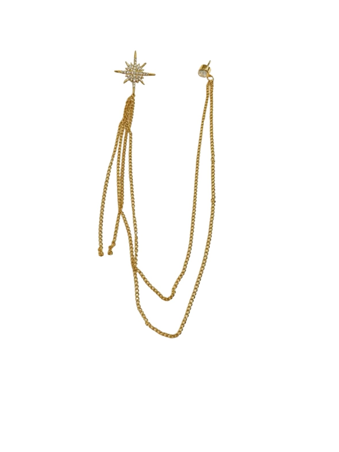Skøn broche designet som stjerne og glassten, som forbindes af fine gyldne kæder. Pin Star & Glasstone fra Tim & Simonsen har fine sten og kan bruges til at pifte dit outfit op.