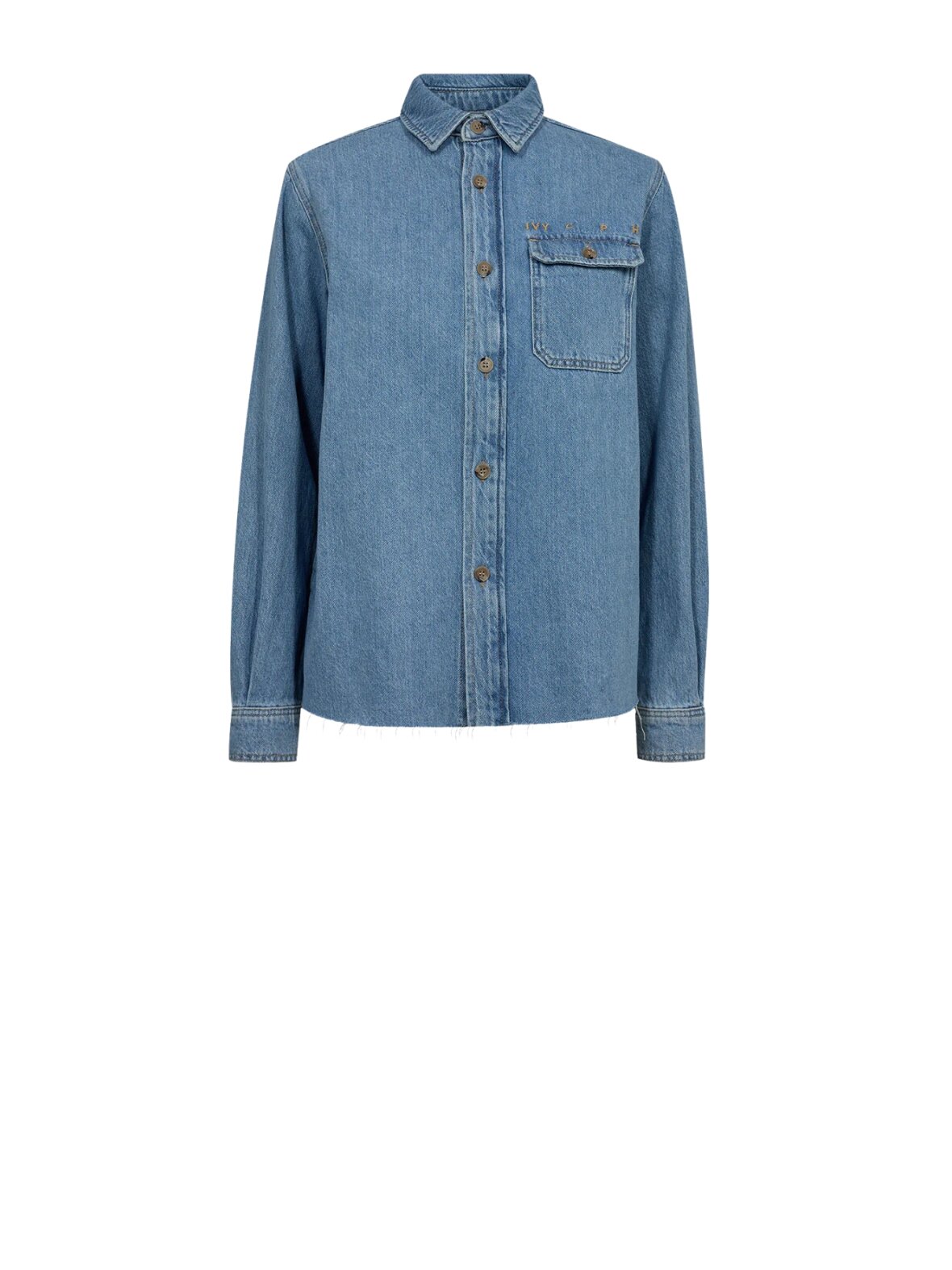 ❤︎ Cool denim skjorte fra Ivy Copenhagen i en blød denim kvalitet. Uta Distressed skjorten har en løs pasform, lange ærmer, krave og brystlomme. Den lukkes med knapper foran og har en cool rå kant i bunden.