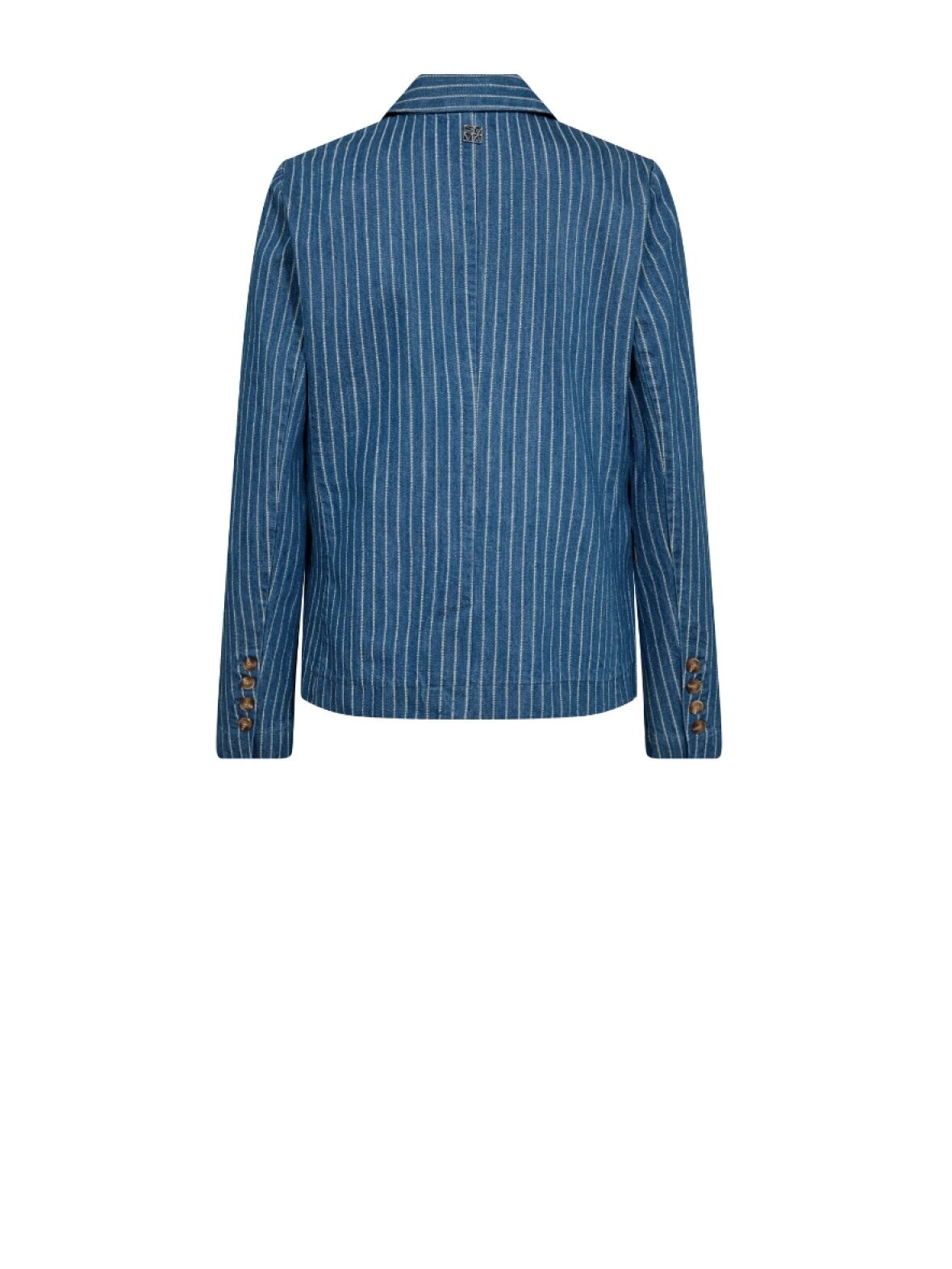 ❤︎ Skøn denimblazer fra Mos Mosh med nålestrib. MMBeline Virto blazeren har en fitted pasform, revers, lange ærmer og lommer foran. Den har en dobbelttradet knaplukning.
