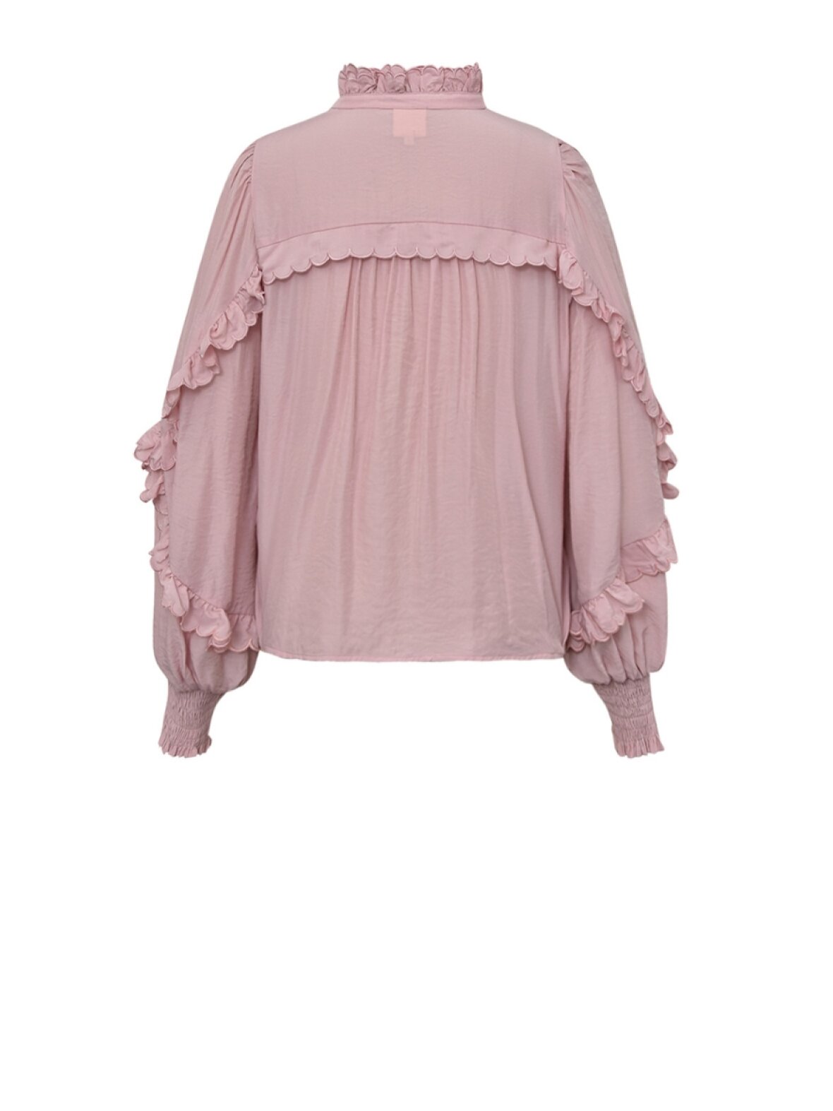 ❤︎ Skøn blusen fra Gossia med lange ærmer og smock ved håndleddet. NanaGO blusen har feminine flæsedetaljer og en rund hals med v-slids. Det bløde materiale er luftigt og sammen med den løse pasform falder den smukt.