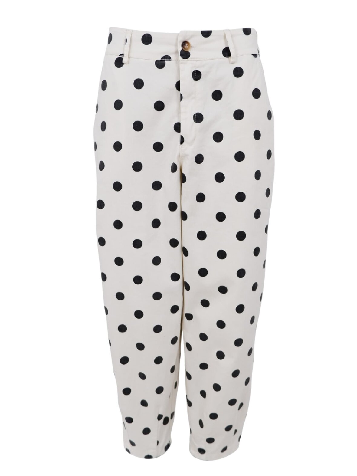 ❤︎ Skønne højtaljede bukser fra Black Colour i super blødt og strækbart materiale med fine prikker. BCEllie Barrel bukserne har en cropped 7/8 længde, en cool barrel pasform, som bliver smal ved anklen og skrå sidelommer.