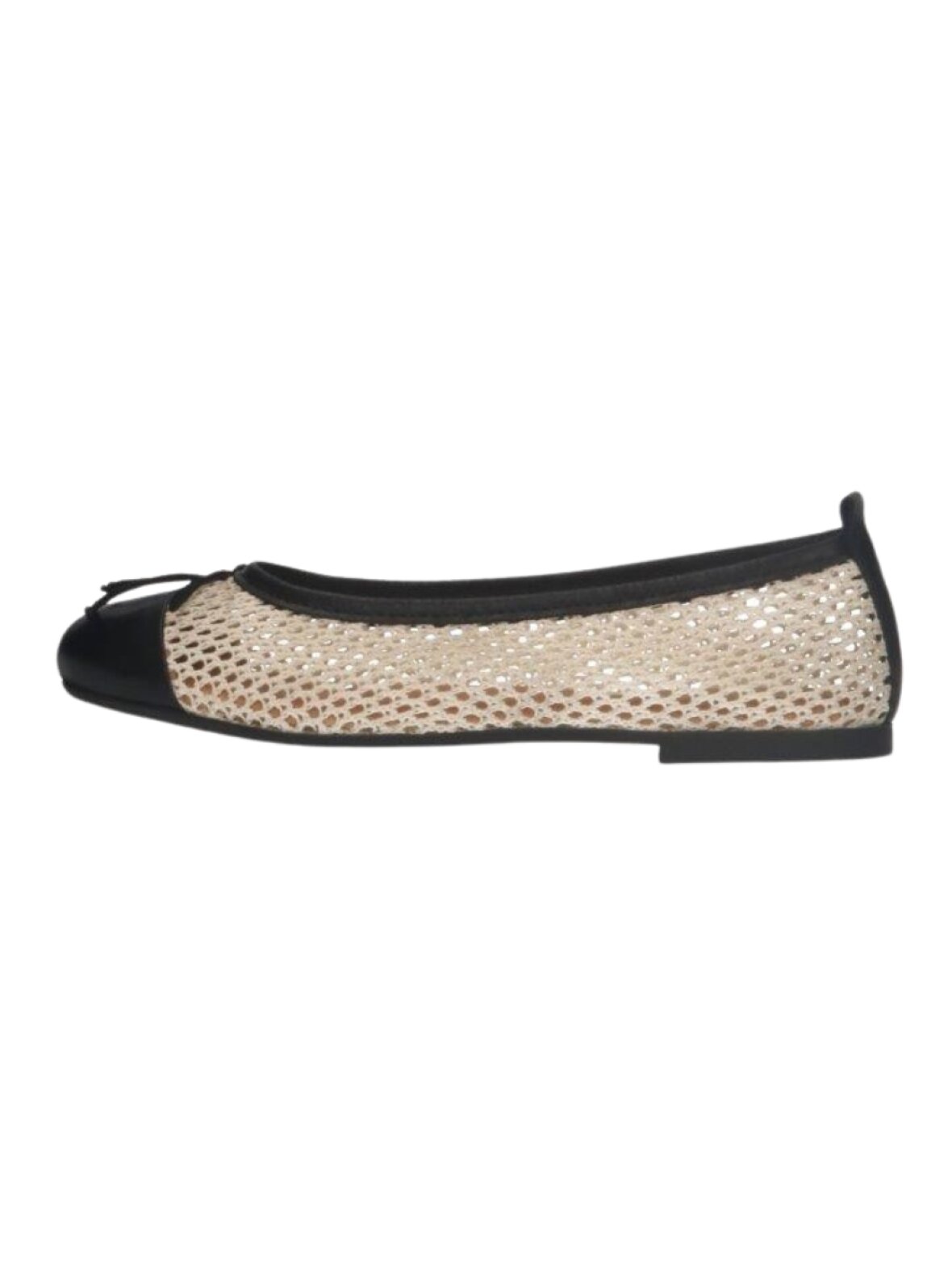 Skøn ballerina fra Pavement med fine skind detaljer og et cool net stof. PAMika er designet med en lækker, fleksibel skind dæksål, og en rund snude med sløjfe.