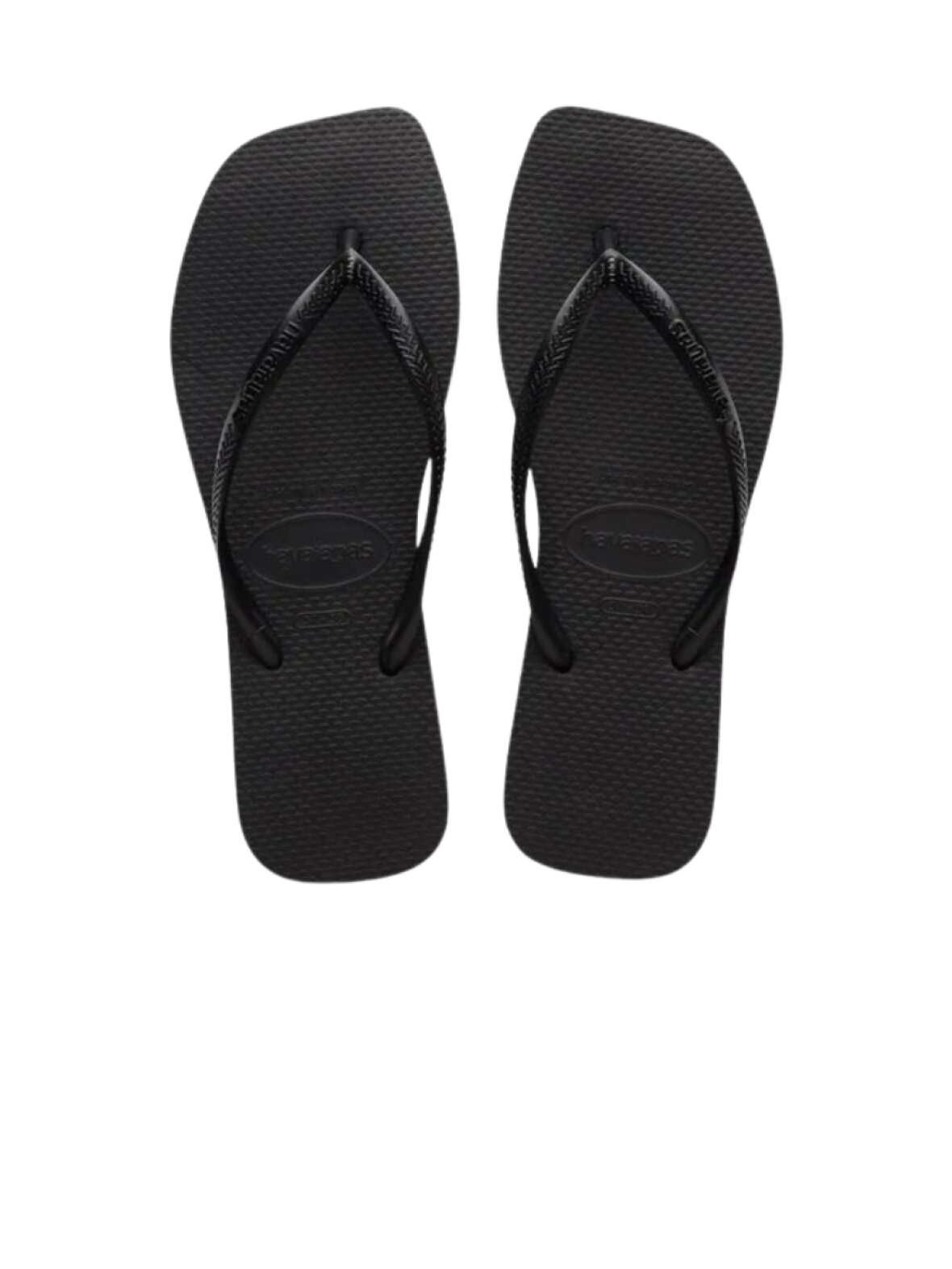 Den klassiske flip flop sandal fra Havaianas i en nyfortolkning med firkantet snude og smalle remme, med Havaianas logo.