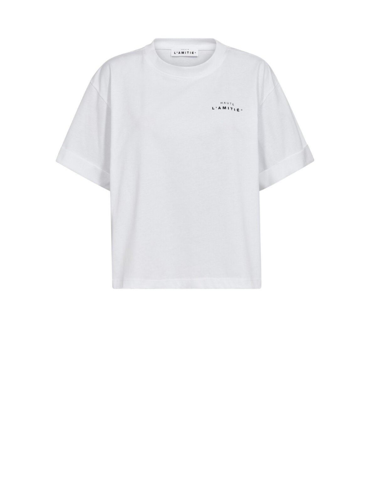 ❤︎ Skøn bomulds t-shirt fra Haute L'amitié med et cropped box fit. Crew Neck Crop Tee har korte ærmer med fastsyet opsmøg, en rund hals og logo på brystet.