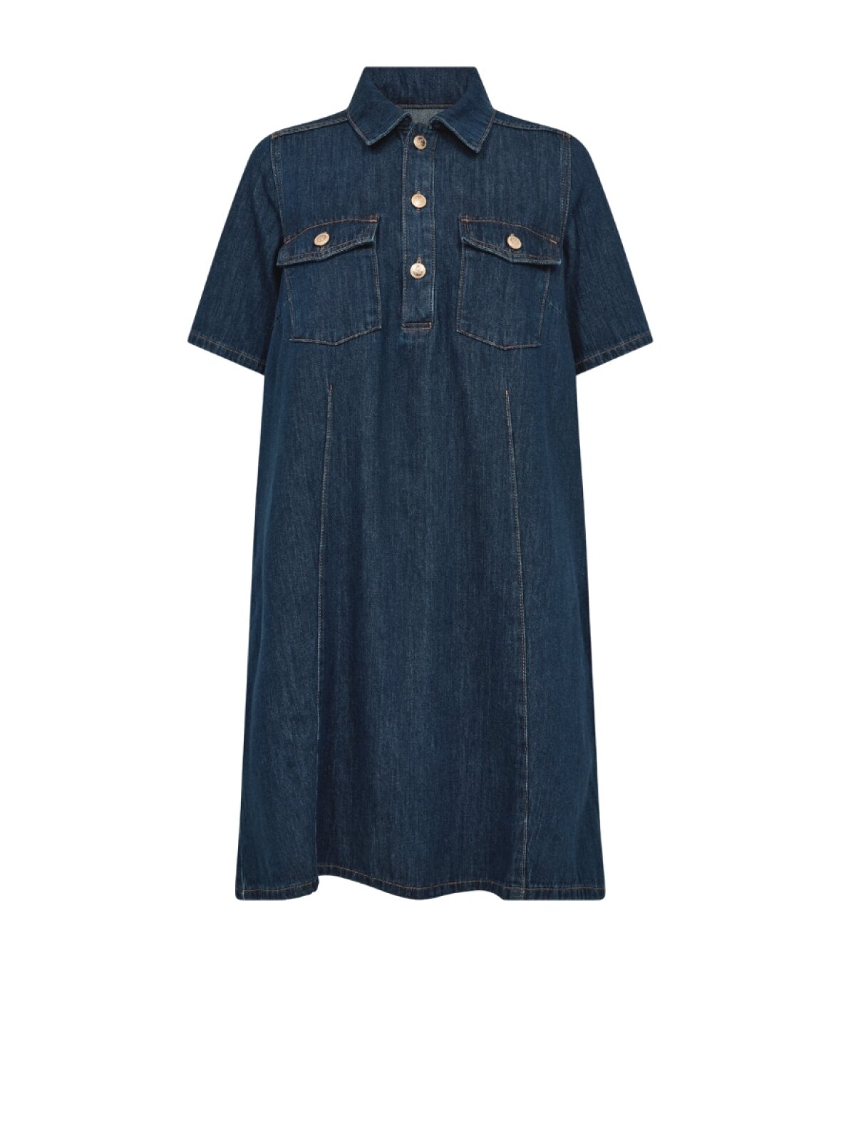 ❤︎ Skøn denimkjole fra Mos Mosh i en super bød kvalitet og med let vidde i skørtet. MMBiba East kjolen har sidelommer, korte ærmer, små brystlommer og knaplukning ned over brystet.