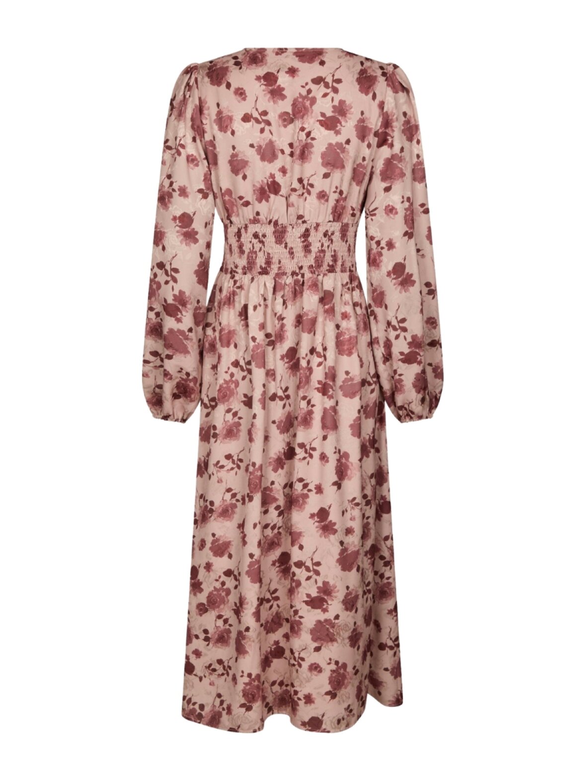❤︎ Skøn kjole fra Neo Noir med flot blomsterprint og lange pufærmer med elastik ved håndledet. Jellie Print kjolen er designet med v-udskæring, læg foran og smock bagpå i taljen og vidde i skørtet. En virkelig fin kjole med fastyet underkjole og knaplukning foran.