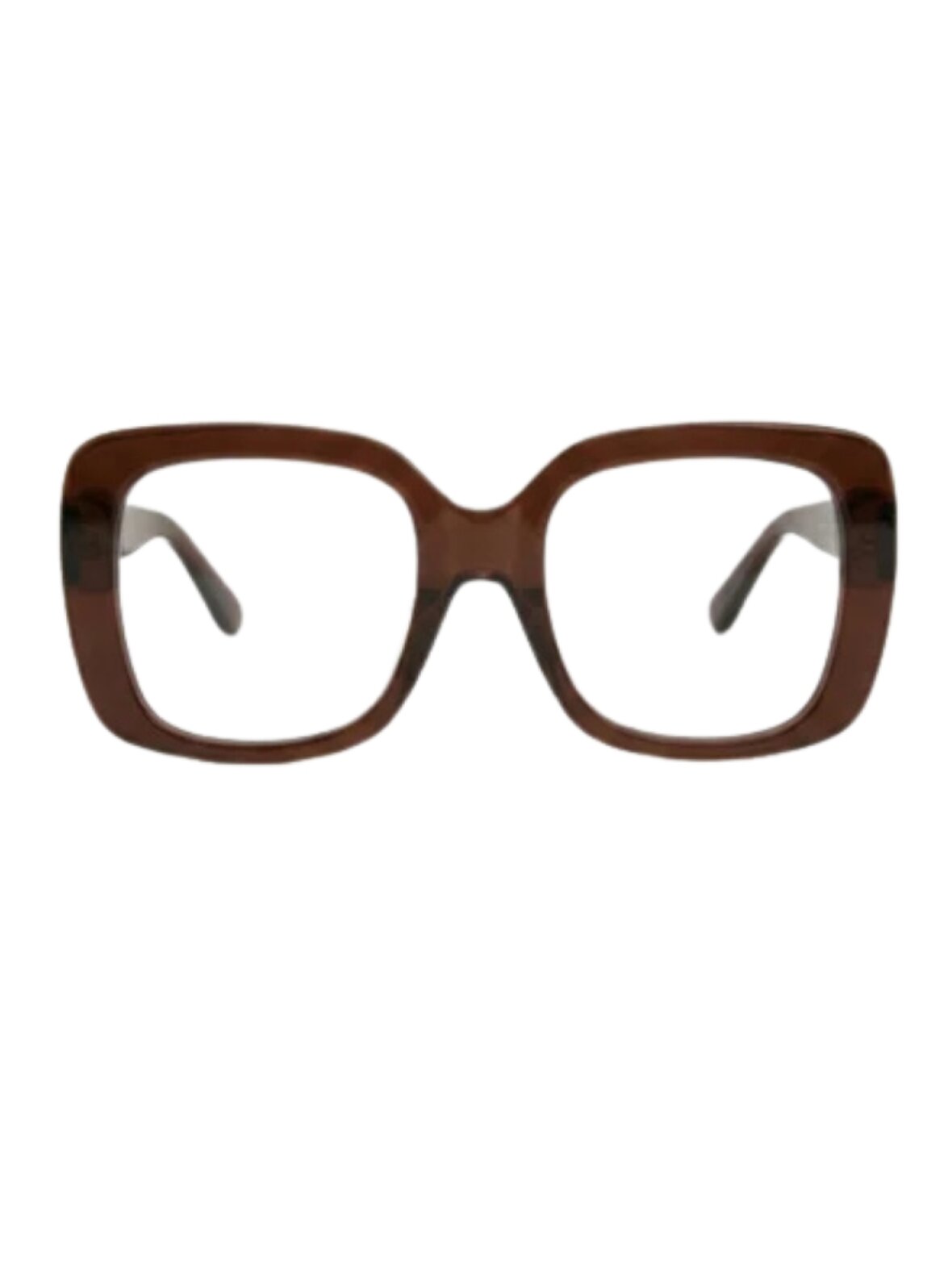 Mio Readers brillen fra Glas, er brune, rektangulære briller med blank finish og kraftigt stel. Den brede bro og de let tonede, klare linser giver et moderne udtryk. Disse fine briller er med styrke.