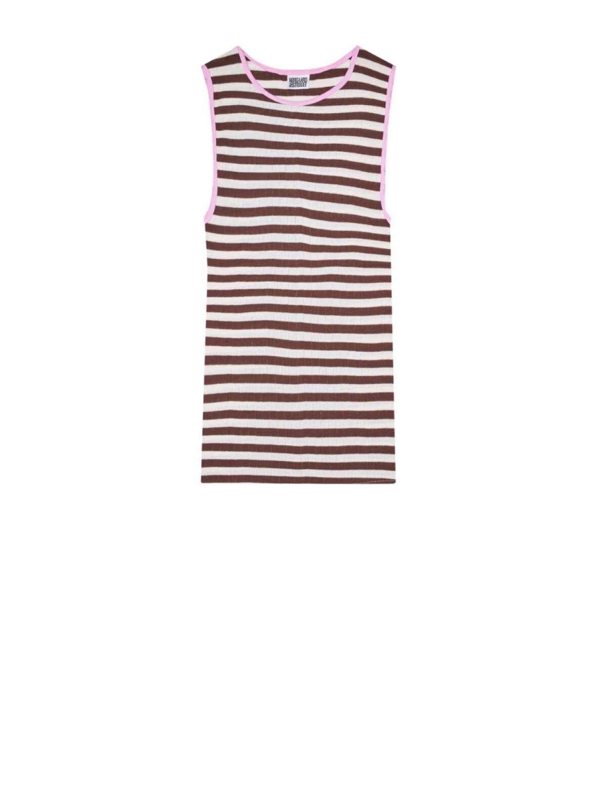 ❤︎ Skøn tank top fra Nørgaard På Strøget. Toppen er lavet i deres populære rib kvalitet. Den har ingen ærmer, men kontrast kant i hals og ved arme. Størrelsen er onesize og god strækbar.