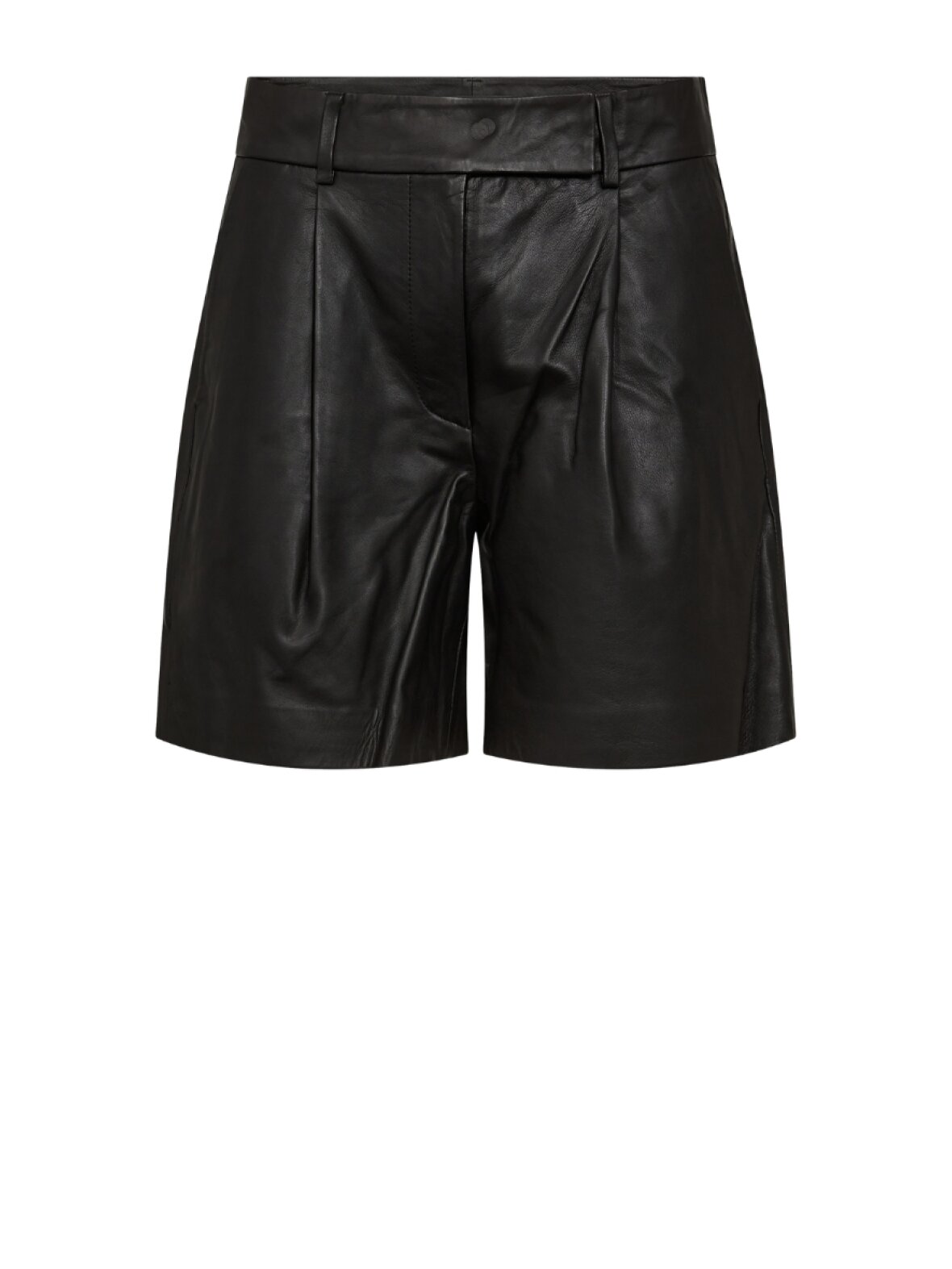 ❤︎ Skønne skind shorts fra Co'Couture med bæltestropper, skrå sidelommer og fine læg foran. PhoebeCC Leather Pleat shortsene har en regulær pasform og lukkes med skjult lynlås, to hægte og knap.