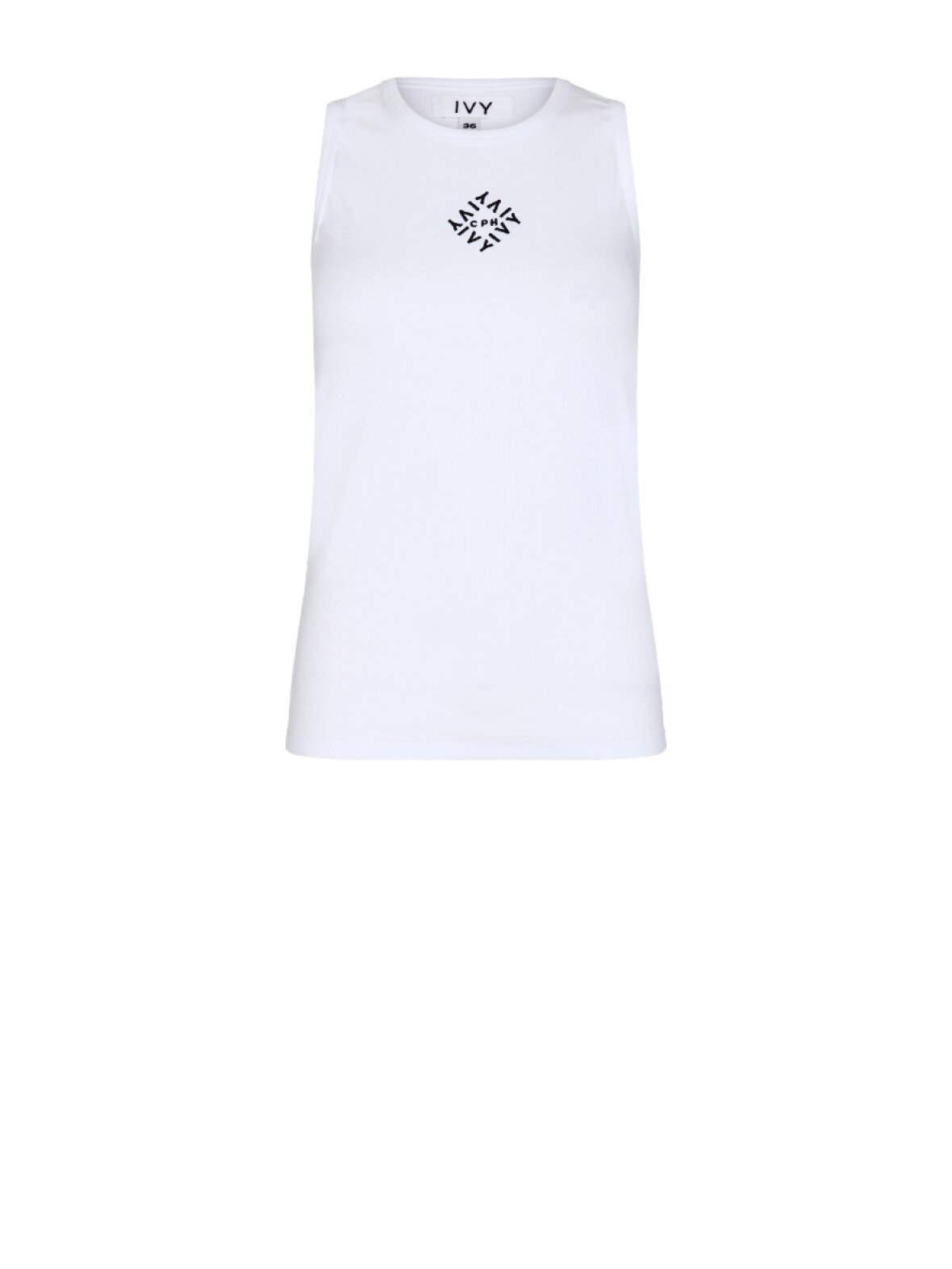 ❤︎ Super blød tank top fra Ivy Copenhagen i skøn rib. Ivy Rita Tank toppen har en tætsiddende pasform i strækbart kvalitet, ingen ærmer og et broderet logo midt på brystet.