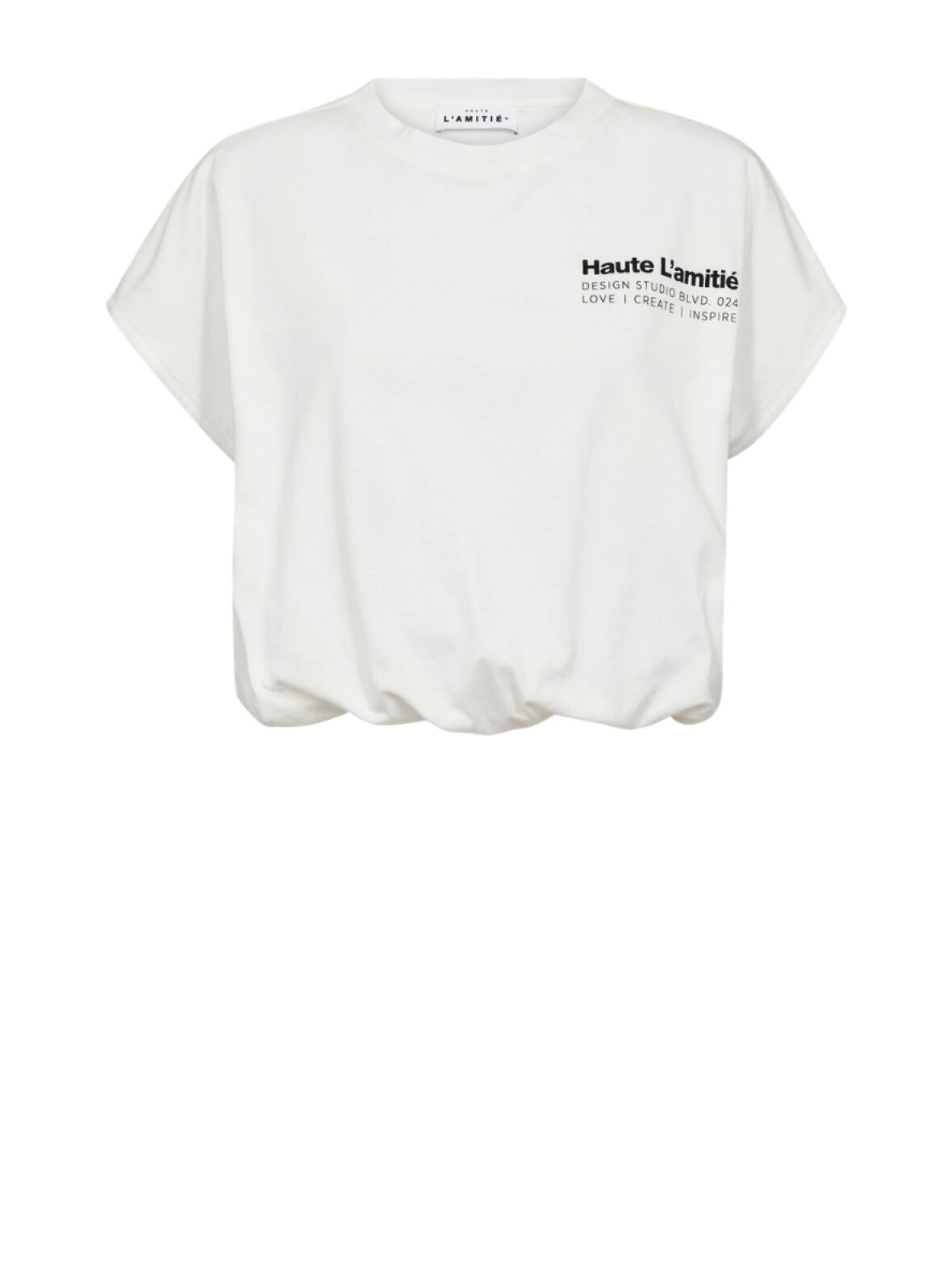 ❤︎ Cool t-shirt i den blødeste kvalitet fra Haute L'amitié. Noma NS Balloon Tee har et løst fit, et lille ærme og elastik i bunden, som skaber et fint ballon fit.