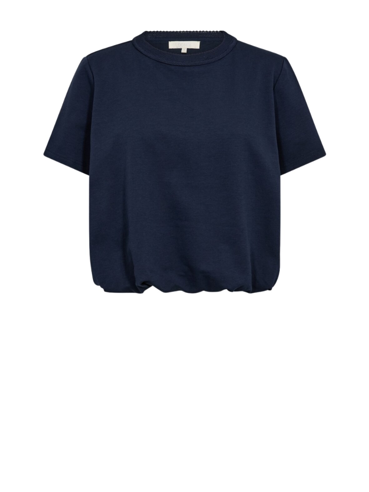❤︎ Cool Tee med små skulderpuder og korte ærmer fra Gossia. KarolineGO Tee har et løst rummeligt fit, dobbeltlag og elastik i bunden for at skabe ballon-effekt. Den fine t-shirt er i super blød bomuldsblanding og har en rund hals.