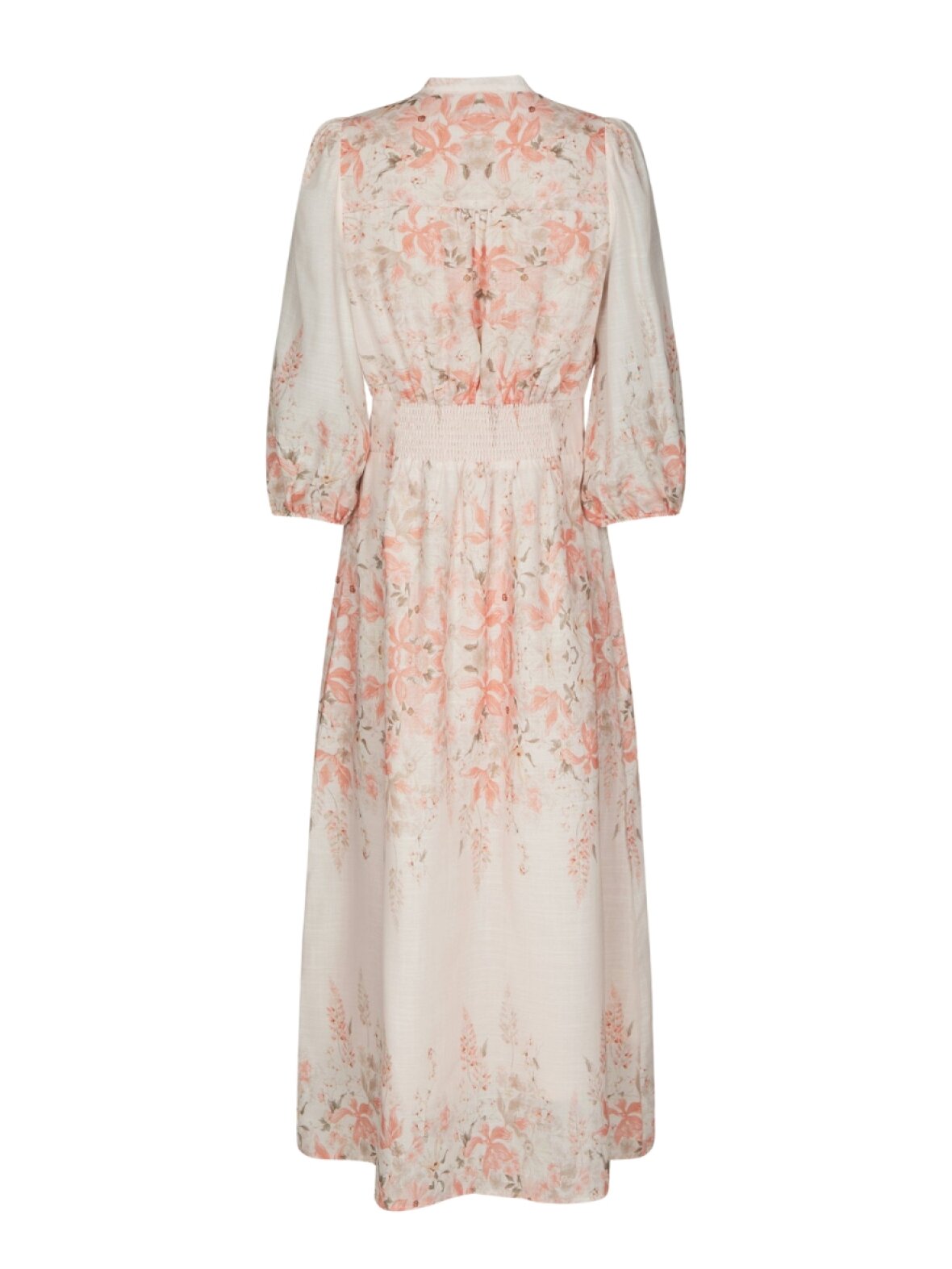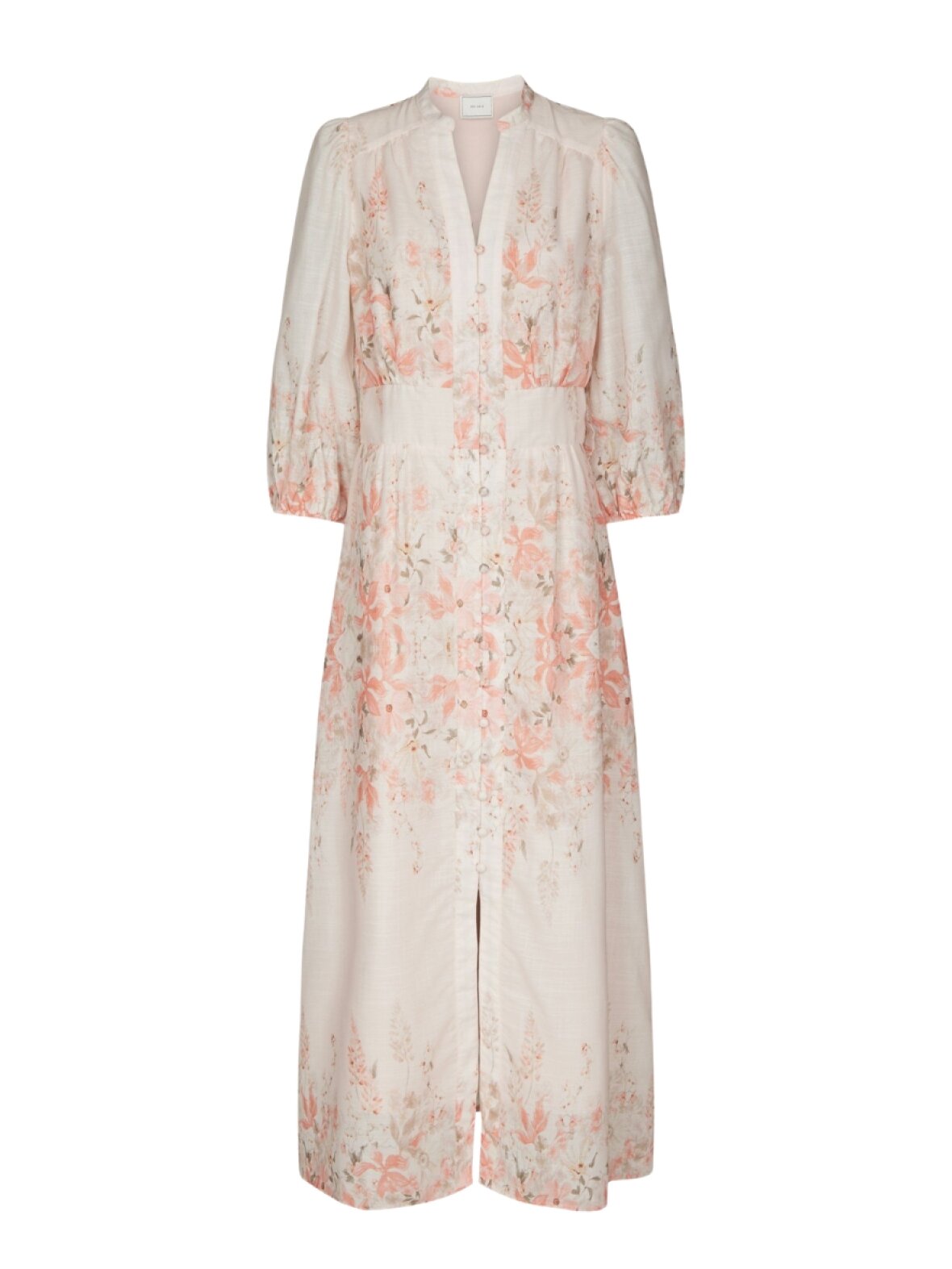 ❤︎ En super smuk og feminin kjole fra Neo Noir med blomsterprint. Stellar Blooming kjolen er lavet i en let kvalitet, har 3/4 pufærmer med elastik ved enden og en flatterende semi-tætsiddende pasform. En virkelig skøn gennemknappet kjole, med v-udskæring og smock i ryggen.