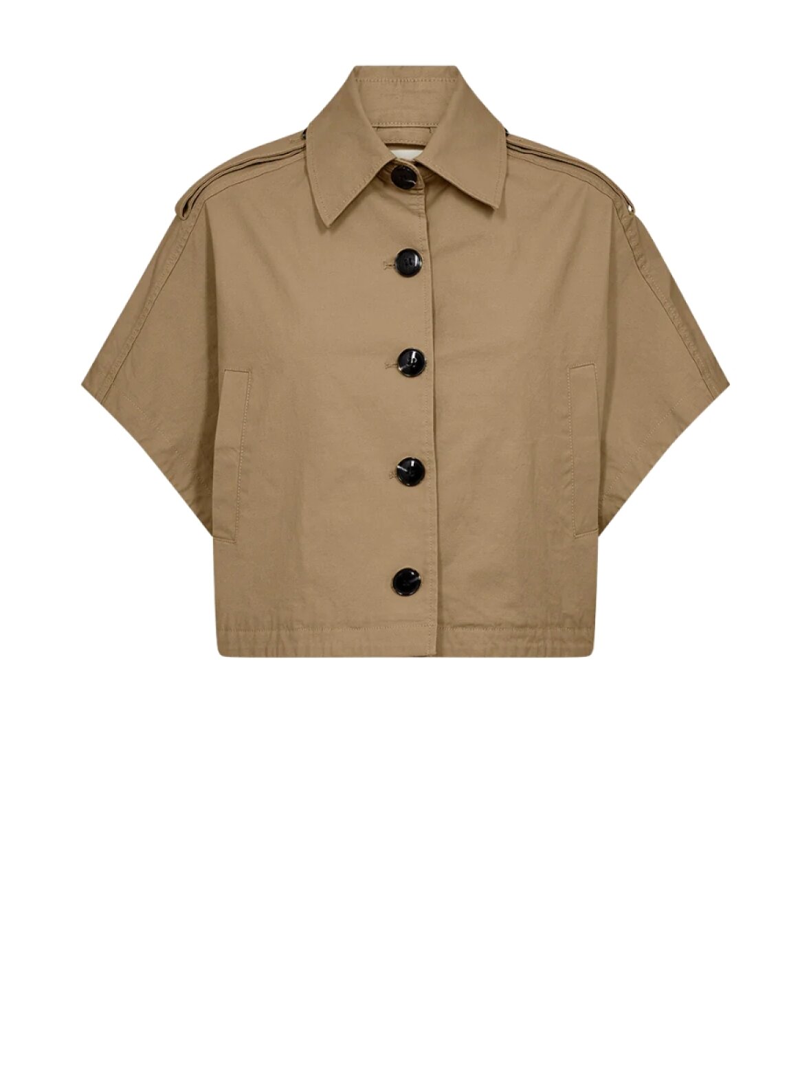 ❤︎ Cool kappe-inspireret vest fra Ivy Copenhagen med korte, brede ærmer. Ivy Katee Cape er designet med skulderstropper, krave og ot bredt, cropped fit. Den lukkes foran med store knapper og har skrå frontlommer.