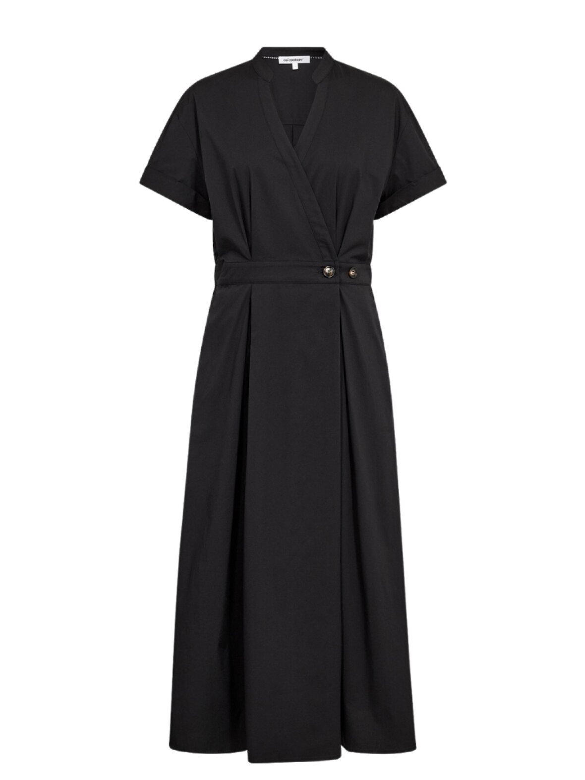 ❤︎ Skøn lang slå-om kjole fra Co'Couture med korte ærmer med fastsyet opsmøg. ElaraCC Wrap kjolen har v-udskæring, sidder til i taljen, samt har elastik bagpå og kan justeres med knap. En virkelig skøn kjole i en let poplin kvalitet, med sidelommer og fine læg.