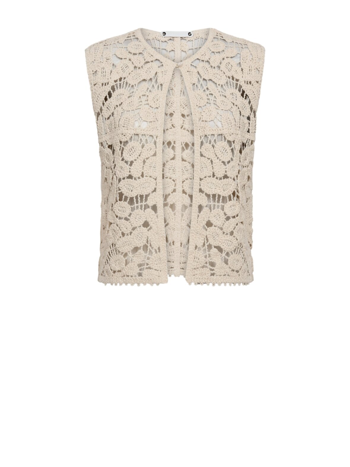 ❤︎ En super flot hæklet top fra Co'Couture uden ærmer. KellyCC Crochet toppen har en rund hals og lukkes med små fine knapper foran.