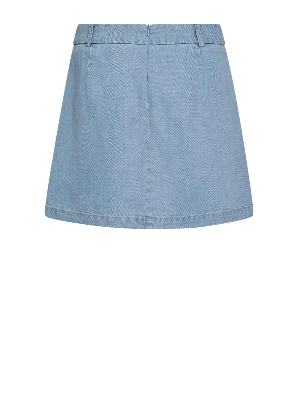 ❤︎ Cool kort nederdel i blød denim fra Co'Couture. TillyCC Pocket nederdelen har en fin slå-om detalje foran, samt pyntelomme. En skøn nederdel med bæltestropper og lynlåslukning bagpå. Indvendigt har den fastsyet indershorts.
