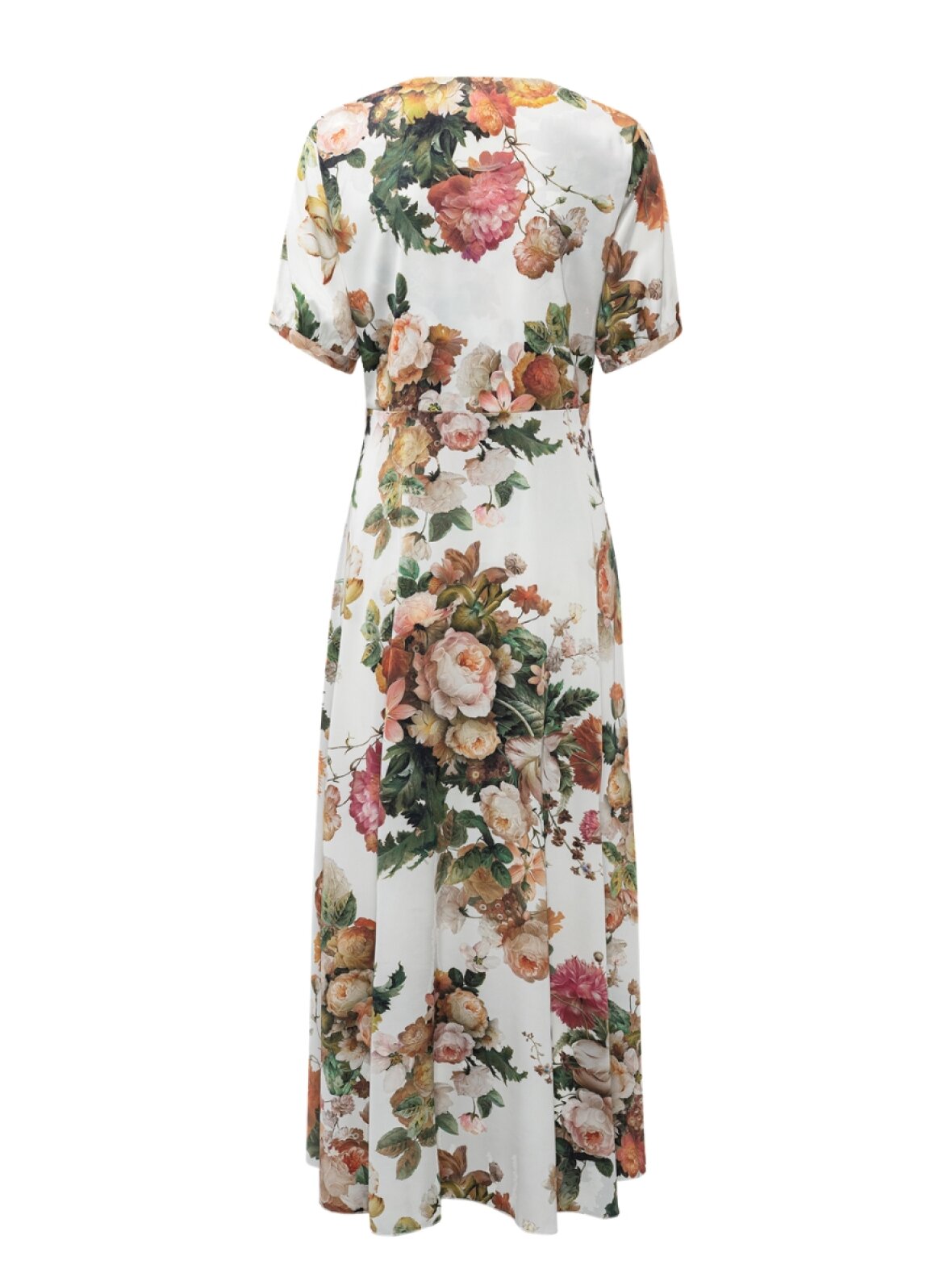❤︎ Smuk kjole fra Karmamia med v-hals og knude detalje foran. Faye kjolen er designet som en længere kjole med korte ærmer, samt vidde i skørtet. En virkelig skøn og feminin kjole i en smukt skinnende satin kvalitet, som falder smukt og er behagelig at have på.