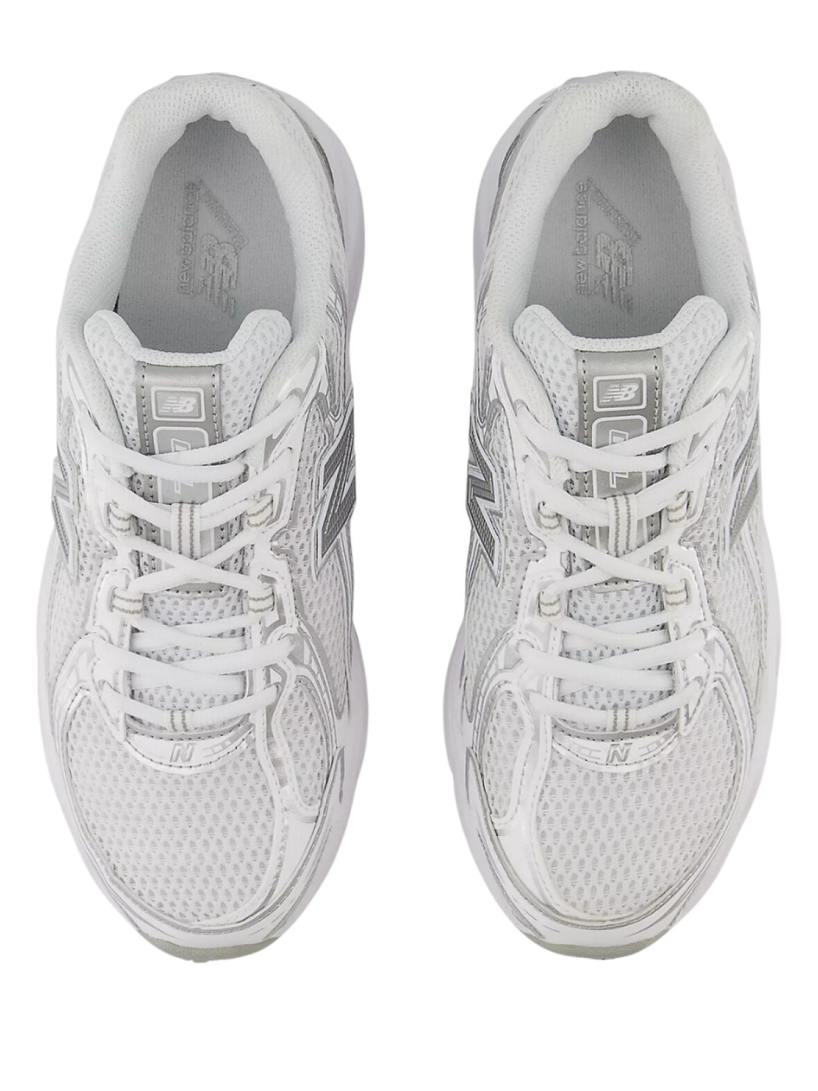 Cool sneakers fra New Balance i en flot farvekombination af hvid og grå med seje sølvdetaljer. Den cool sneakers er lavet med god komfort med mesh detaljer og har snørelukning. En komfortabel sneakers med rund snude, fleksibel sål og god pasform.
