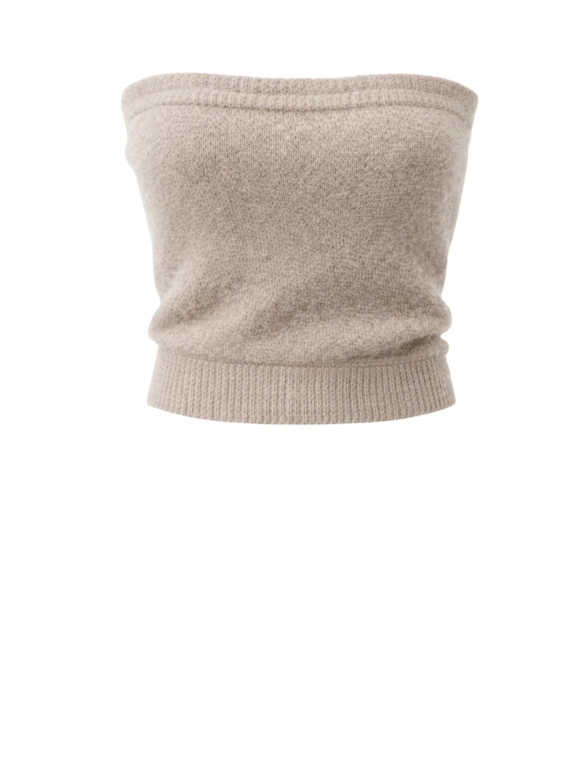 ❤︎ Skøn strikket bandeau top fra AMERICANDREAMS i en lækker uld mix kvalitet. Tessi Bandeau Alpaca toppen er designet med cropped fit.
