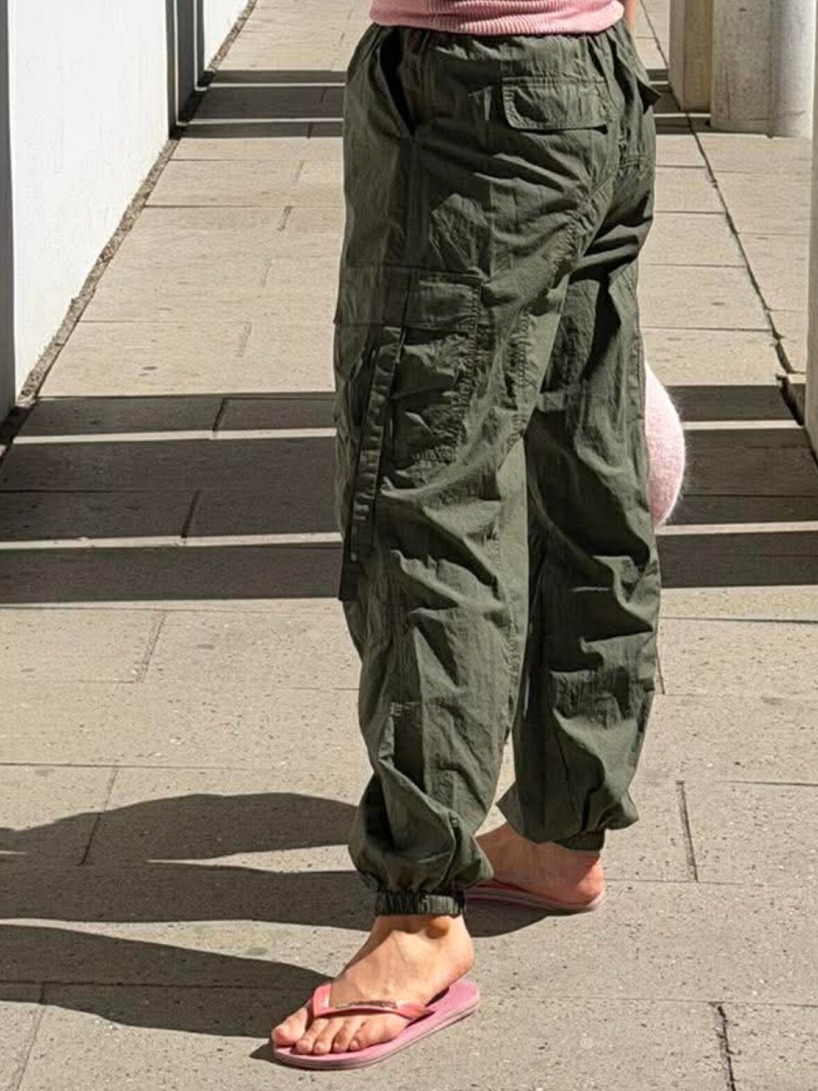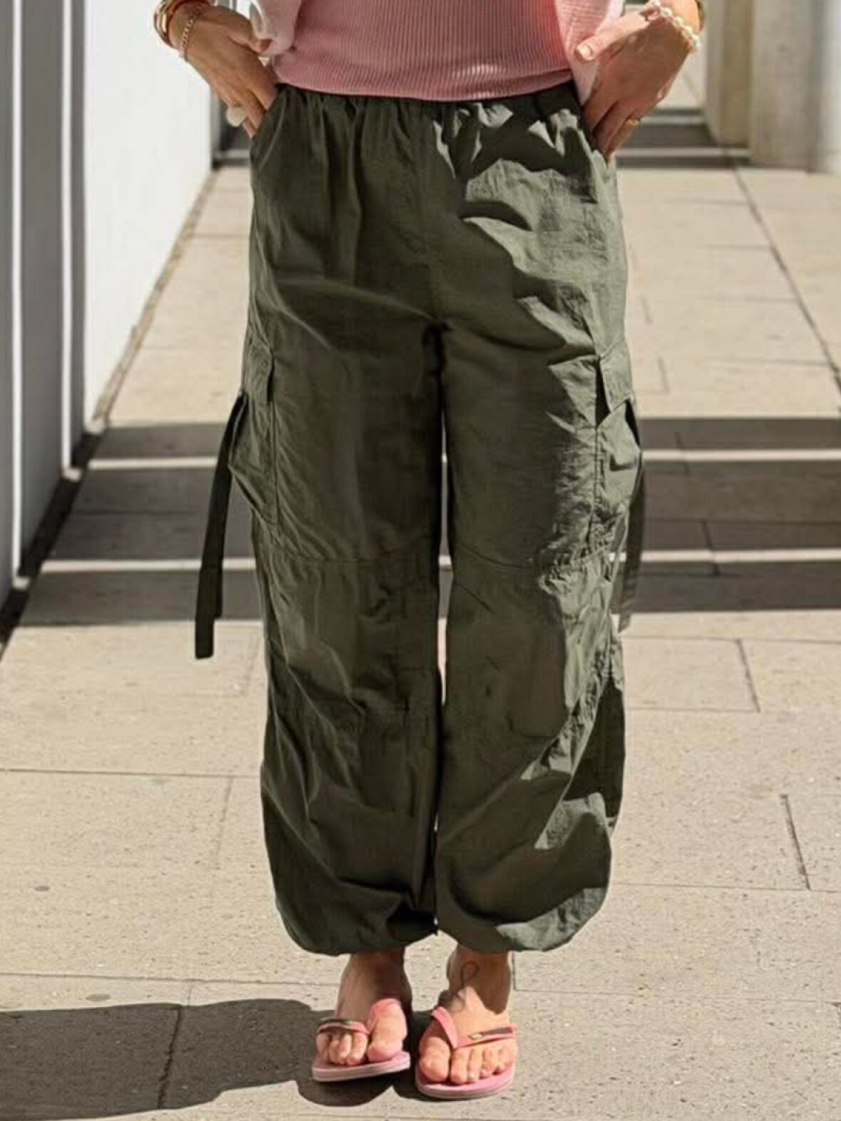 ❤︎ Skøn cargo buks fra Amaze Cph med elastik i taljen og ved anklerne. Buksen har skrå sidelommer og er lavet i en tynd, blød bomuldskvalitet.