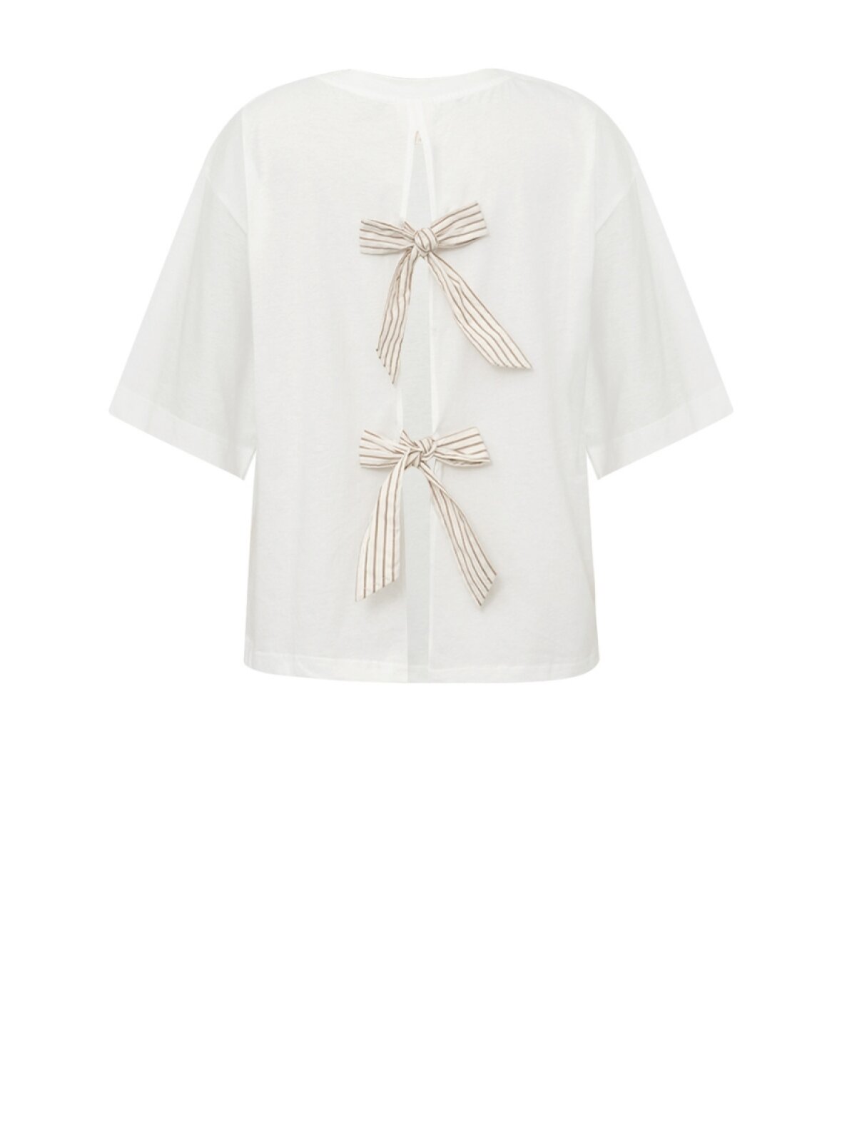 ❤︎ En virkelig fin t-shirt fra Gossia med et rummeligt fit. LulleGO Tee har en rund hals, korte ærmer og en virkelig smuk åben ryg, som bindes med fine sløjfer i strib.